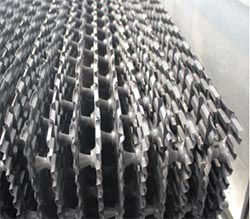 淋水填料 冷却塔中水、气热交换过程主要在淋水填料中进行,其中所产生的水温降达整个温降的70~80%,因此必需使水、气在填料内部进行充分的热交换,性能优良的淋水填料是保证冷却塔长期高效安全运行和运行经济性的重要因素。 淋水填料采用阻燃型改性P.V.C塑料S波薄膜型淋水填料,片距为30mm,阻燃氧指数大于40,填料片基片厚不低于0.40mm±0.05mm。具有良好的热力性能、很低的通风阻力性能、较高的冷却传热面积和效率、较好的阻燃性能,保证水气在填料里有足够的热交换时间。 淋水填料整体组装块强度好。填料采用穿接组装成块,填料穿杆采用PVC塑料材质。 |