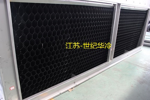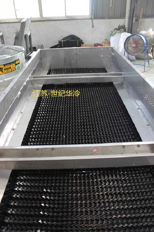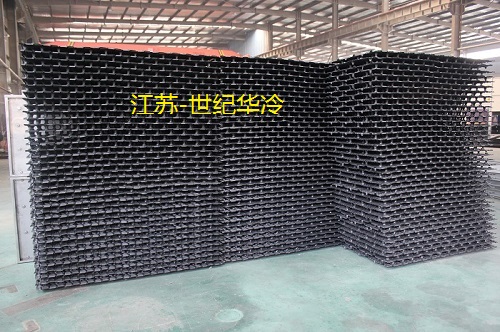 The water spray filler adopts flame-retardant modified P.V.C plastic S-wave film type water spray filler, with a sheet spacing of 30mm and a flame retardant oxygen index greater than 40,