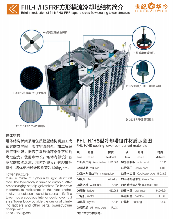 FHL-H series of square cross-flow cooling tower is a mature and reliable cooling equipment formed by our company after years of design, manufacturing, continuous improvement and perfection. The product quality and technical performance are always in the leading position in the industry. |